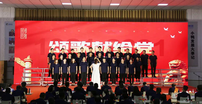 为庆祝中国共产党成立100周年、深入开展党史学习教育,全面展示小鸭集团勇敢拼搏、砥砺前行的精神面貌,6月30日,小鸭控股集团举办“颂歌献给党”合唱展演。国企服务1队领导、集团领导班子成员出席活动,全体在济党员、入党积极分子及部分职工代表参加活动。