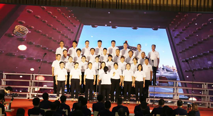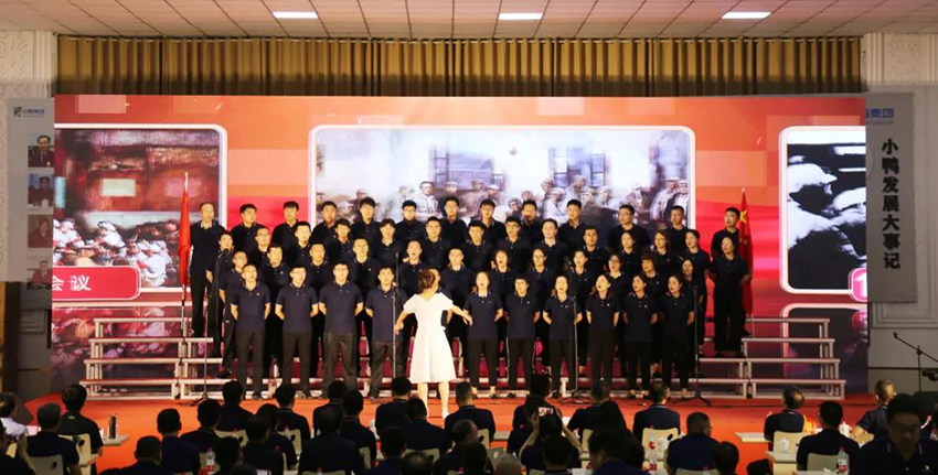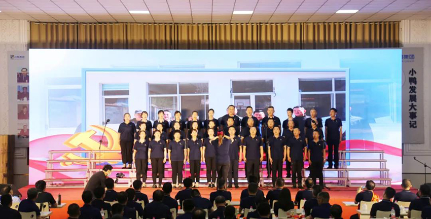 中共山东小鸭冷链有限公司支部委员会合唱团率先登场,自信的面庞配上极具韵味的歌声,在场的观众无不为止振奋。正如歌中所唱“我们永远跟着你走,前程灿烂辉煌”,小鸭集团始终践行党的要求,永远跟党走,彰显国企担当。