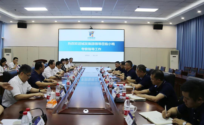 7月1日,城发集团党委书记、董事长许宗生、党委副书记、总经理殷光伟、党委副书记、董事董庆哲、党委委员、副总经理、工会主席胡娟、副总经理张骞之等领导一行莅临小鸭参观交流。集团党委书记、董事长、总经理李永刚、集团党委委员、副总经理王梓楠、集团总经理助理潘奎新、集团党委委员、综合办公室主任谢鹍、小鸭精工机械公司总经理王前锋、小鸭资产运营公司副总经理王进等领导热情接待。
