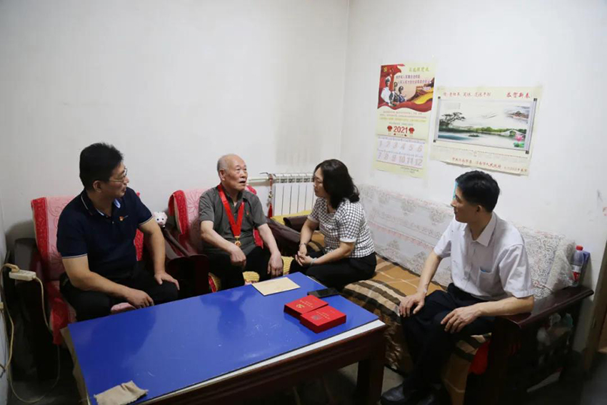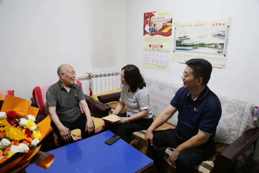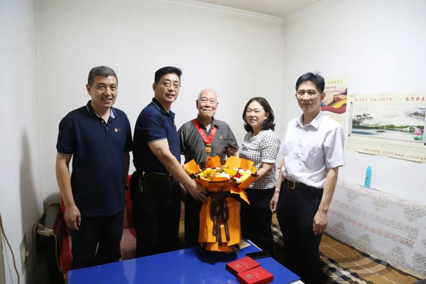 在喜迎建党100周年之际,济南市国资委副主任、党委委员周蒨、国资委人事处处长孙兴军等领导一行走访慰问小鸭集团“光荣在党50年”的老党员代表邢桂法同志,向他颁发“光荣在党50年”纪念章。集团党委副书记、纪委书记、工会主席邵纪华等领导陪同慰问。向他们送去节日的问候和组织的温暖关怀。